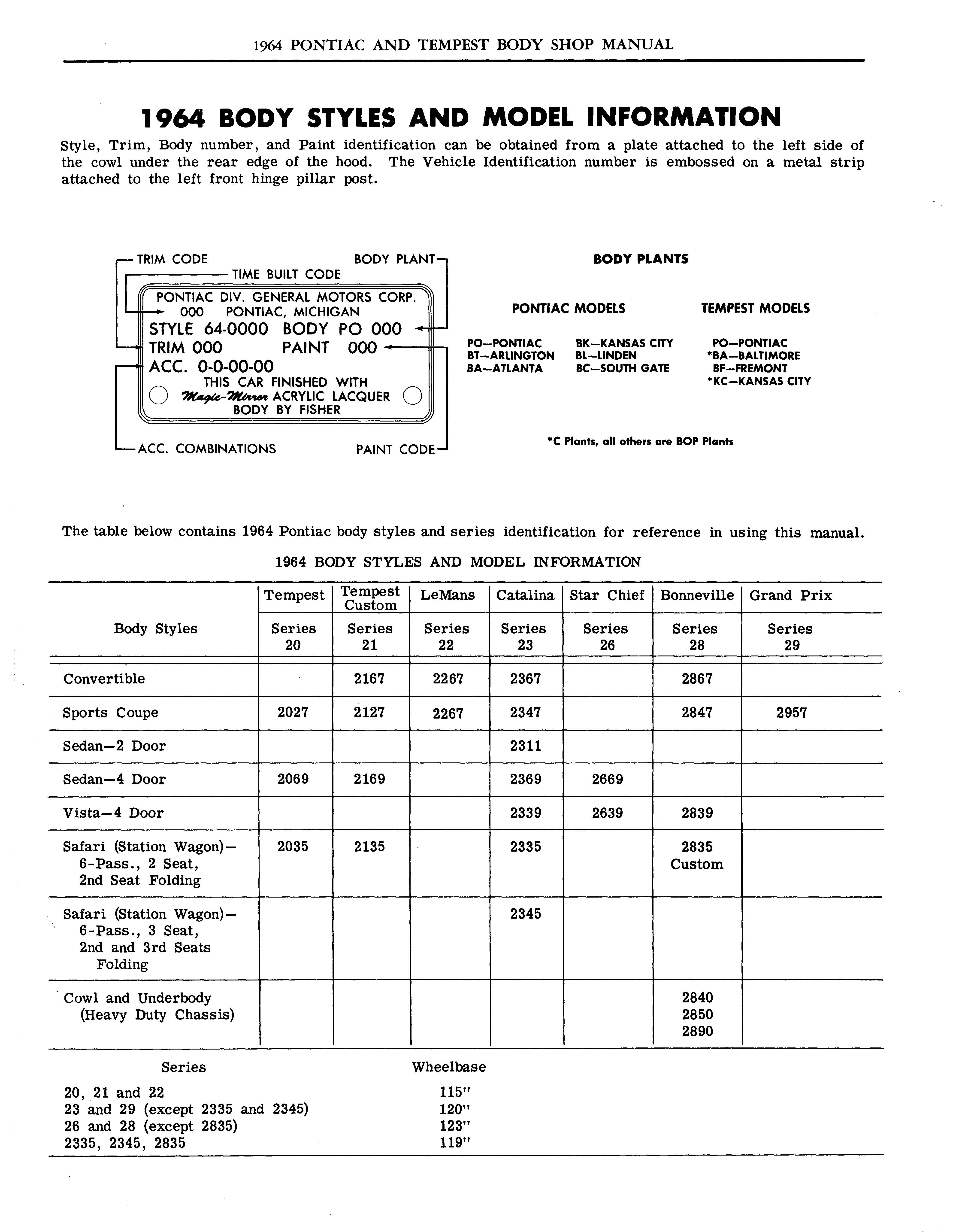 1964 Pontiac Body Service Manual - Chassis Sheet Metal